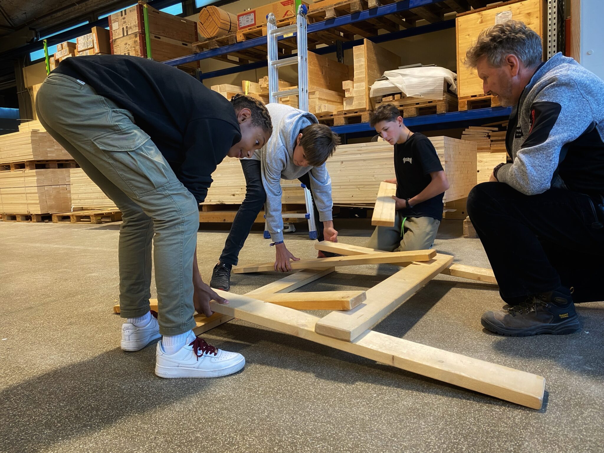 An diesem Nachmittag lernten die Jugendlichen nicht nur was Holz als Material kann. Sie wurden auch zur Teamarbeit angeregt. Die anfängliche Zurückhaltung einiger Schüler wich einem fokussierten Miteinander, als sie begannen, gemeinsam eine Leonardo-Brücke zu bauen. Es war bemerkenswert zu sehen, wie Jugendliche, die zu Beginn noch unaufmerksam wirkten, plötzlich in Führungsrollen schlüpften und als Gruppe das Projekt meisterten. Gemeinsam staunten sie über die Stabilität von Holzkonstruktionen und blickten stolz auf ihr Gemeinschaftswerk. Andreas Andermatt, Geschäftsführer des Bildungszentrums, der diese Station betreute, betonte, dass im Holzbau das Lösen von komplexen Problemen eine zentrale Rolle spielt. Gleichzeitig machte er die Jugendlichen darauf aufmerksam, dass niemand von ihnen erwartet, dass sie alles schon am ersten Tag ihrer Ausbildung können. Er verglich den Lernprozess mit dem Training in sportlichen Disziplinen. «Ihr werden mit der Zeit immer besser», versprach er. «Eure Ausbildnerinnen und Ausbildner stehen – wie Trainer – an eurer Seite.»
