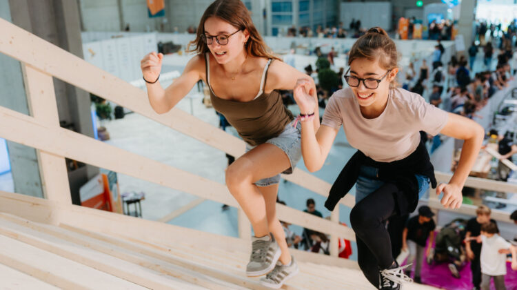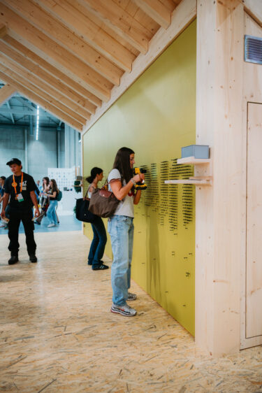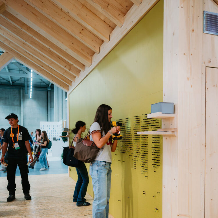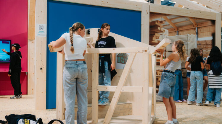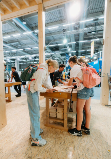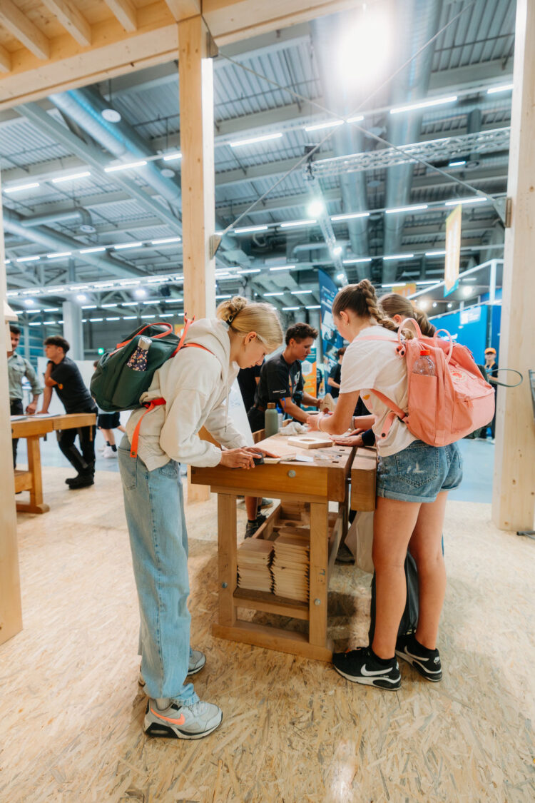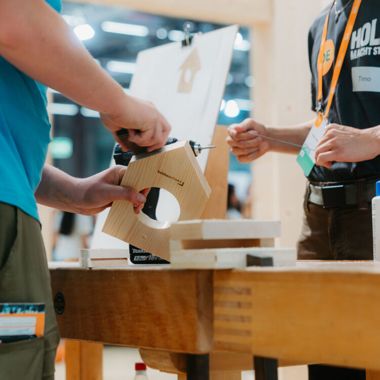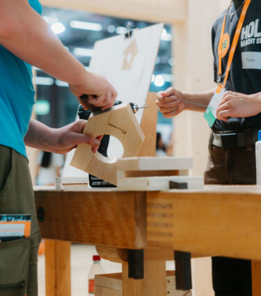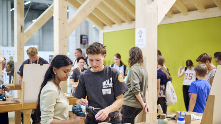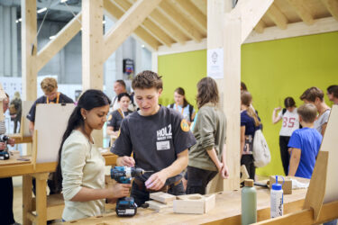 Der Stand von Holzbau Schweiz lockte mit abwechslungsreichen Mitmach-Angeboten für die junge Zielgruppe – von einer Schraubwand über ein HoloLens-Game bis hin zur Werkarbeit. Alle Aktivitäten luden zum Ausprobieren ein und machten das Handwerk unmittelbar erlebbar. Auf der Schraubwand formten die Besucherinnen und Besucher im Verlauf der Woche die drei Wörter «Holz», «Bois» und «Legno» – dafür waren 6600 Schrauben nötig. Auch die Fotobox und die Werkzeugwand als Selfie-Hintergrund sorgten für bleibende Erinnerungen. Besonders beliebt war das Dach-Wettrennen, bei dem Jugendliche ihre Schnelligkeit messen konnten.