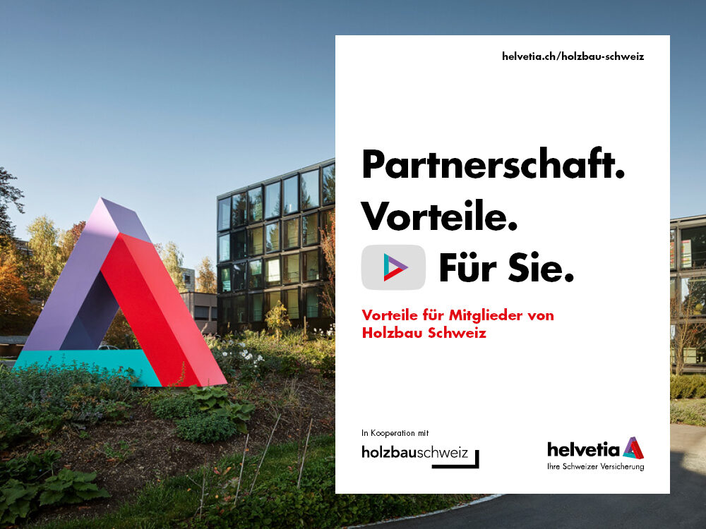 Helvetia Versicherungen und Holzbau Schweiz spannen zusammen – für Ihre Sicherheit! Mitglieder profitieren von exklusiven Vorteilen: Top-Konditionen für Ihre Versicherungslösungen – Insbesondere bei Baugarantie- und Maschinenbruchversicherungen sowie mit Vergünstigungen für Privatversicherungen der Mitarbeitenden. Eine starke Partnerschaft für erfolgreiche Projekte und umfassenden Schutz – beruflich wie privat.